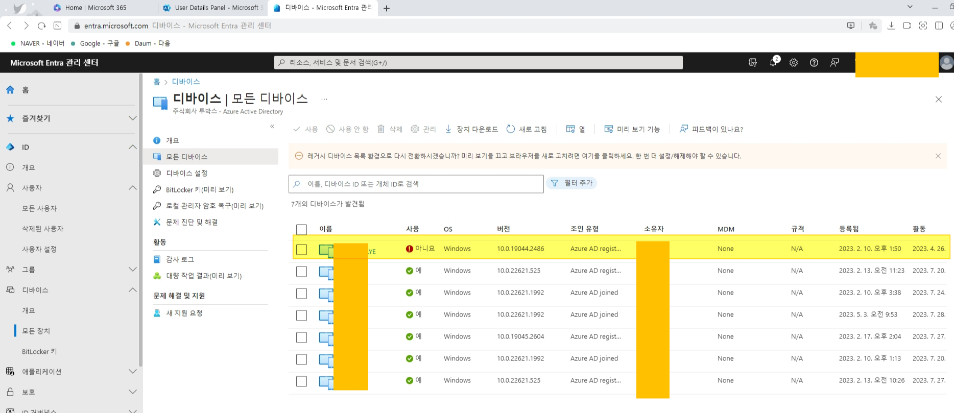 AzureAD 에 들어가보니 이용금지가 되어있음
